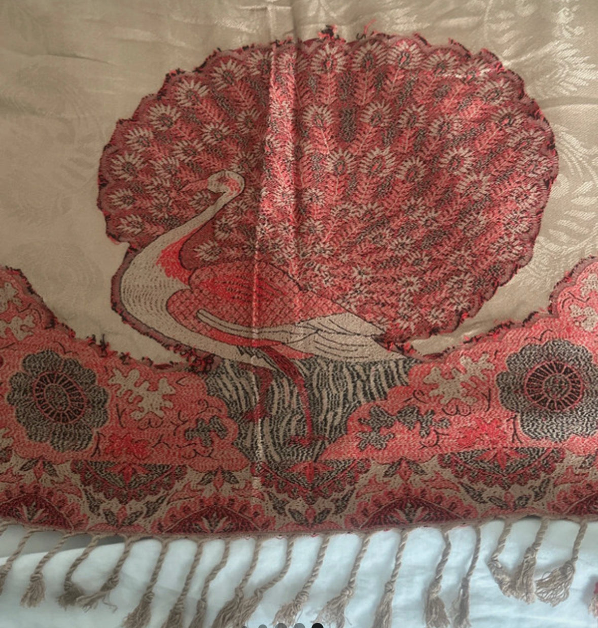 Traditional Punjabi Phulkari Shawl - Pink & Orange Embroidered Wrap